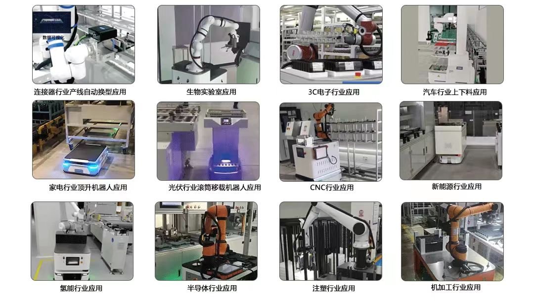 转运机器人可以实现不同场景料箱、物料等转运工作,解放人力,实现无人化运输,可以应用在汽车、新能源、电子、机加工、物流、食品与饮料、生命科学等行业。