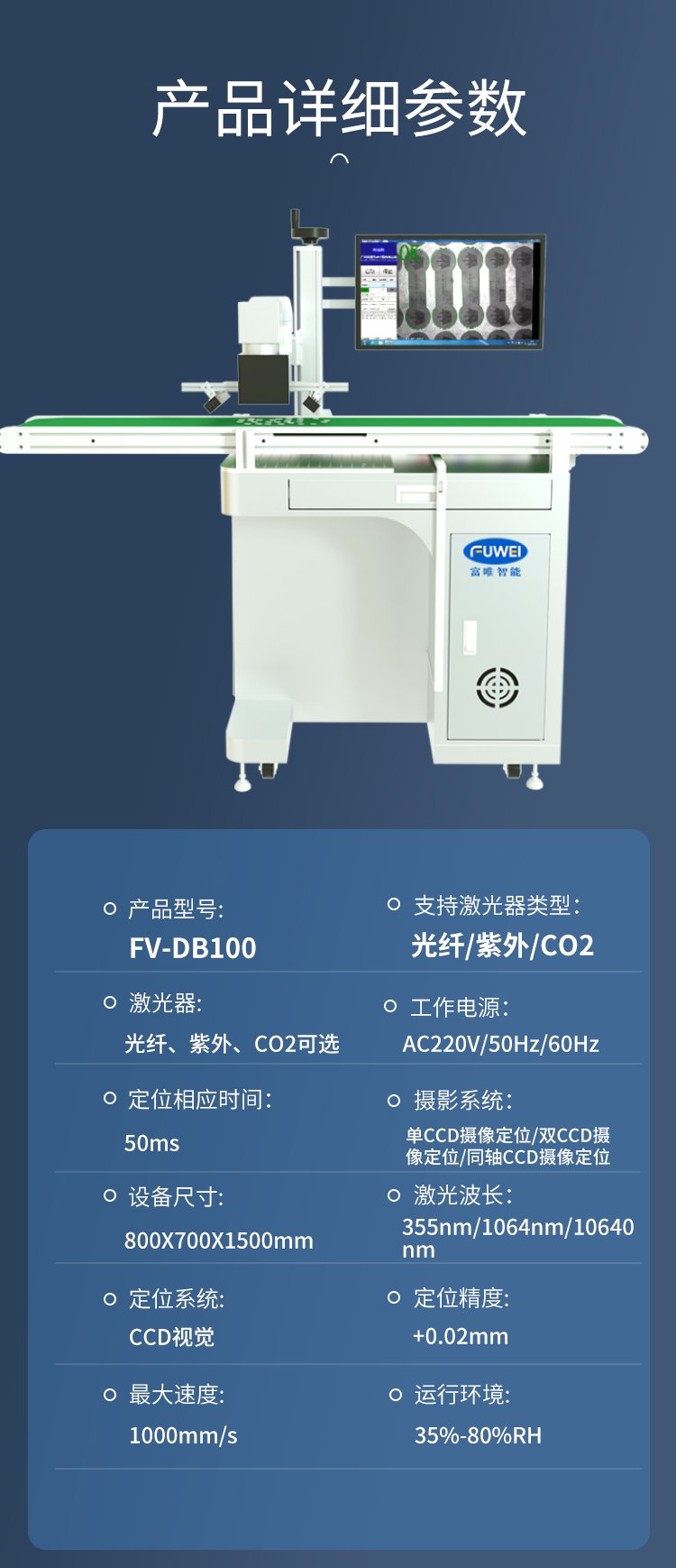 - 可根据实际产品特点增加XYZ轴,实现全自动化视觉定位打标。